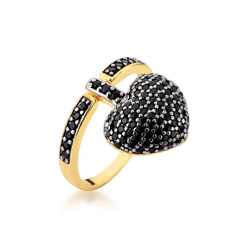 ANEL ZIRCONIA NEGRA E CORACAO BOLSINHA