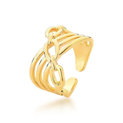 ANEL LINHA GOLD COM 3 AROS LISOS E IMITAÇÃO DE CORRENTE