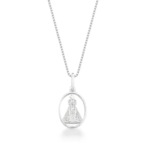 GARGANTILHA PRATA 925 PIN OVAL DE NOSSA SENHORA